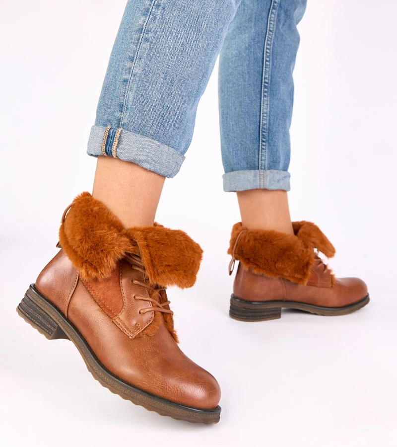 Botine maro din piele ecologică întoarsă cu talpă masivă Alana