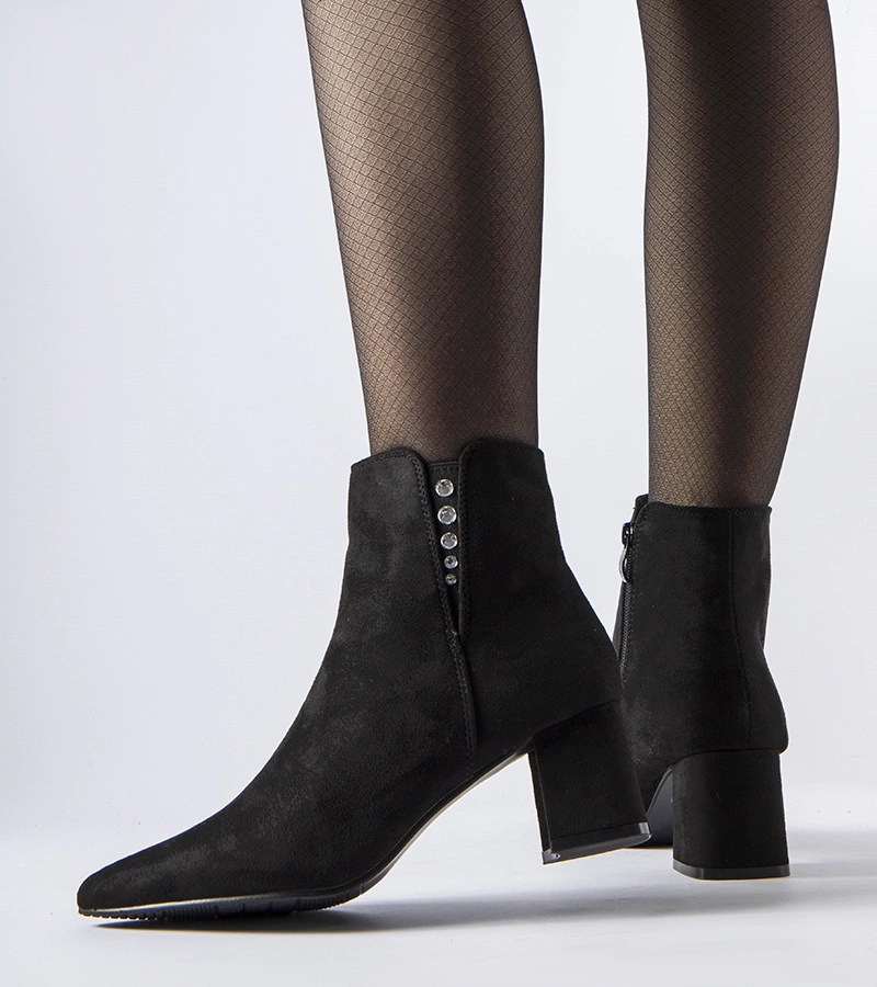 Botine clasice negre cu toc și căptușeală termică Caio