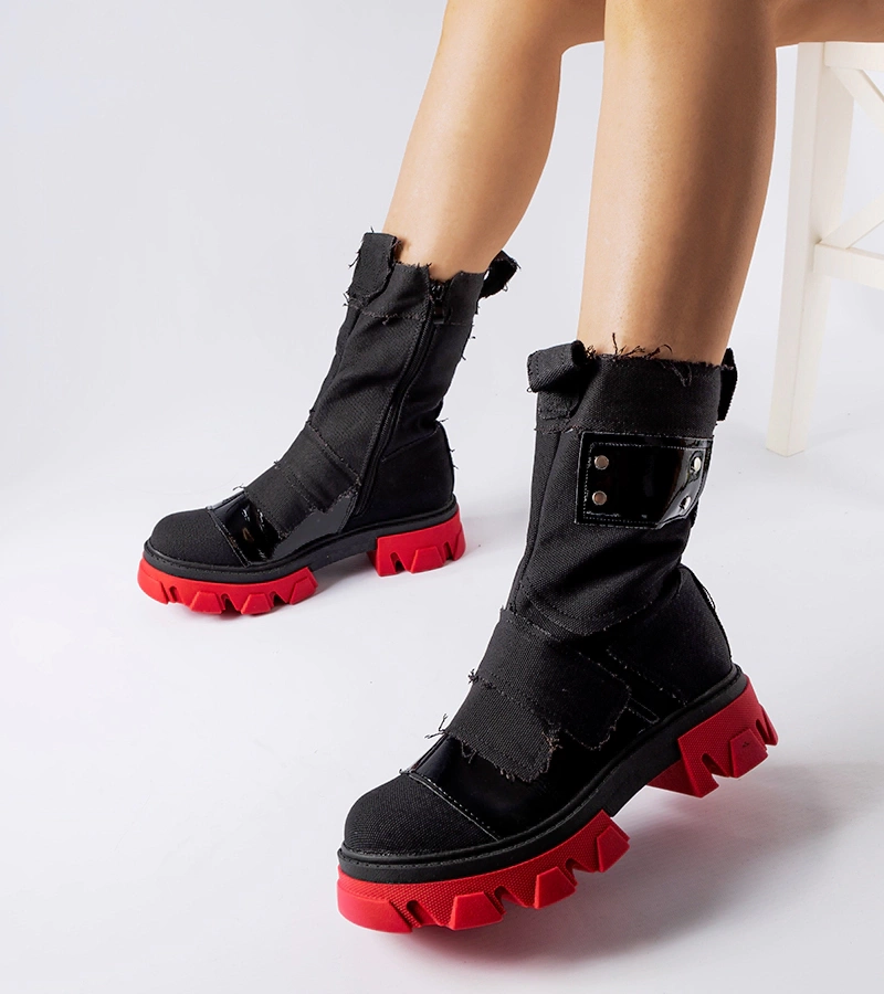 Botine negre cu pete roșii și talpă roșie Sabina