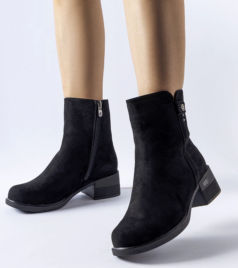 Botine negre cu toc mic din piele ecologică Ivano