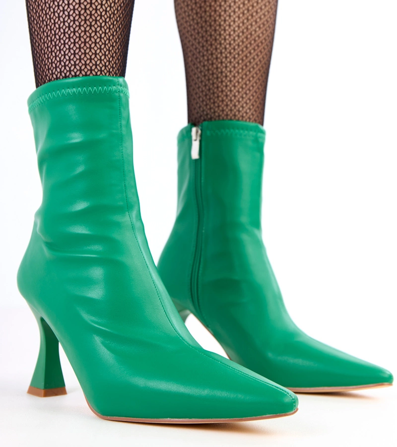 Botine verzi cu toc cui decorate cu cristale Fantagaro