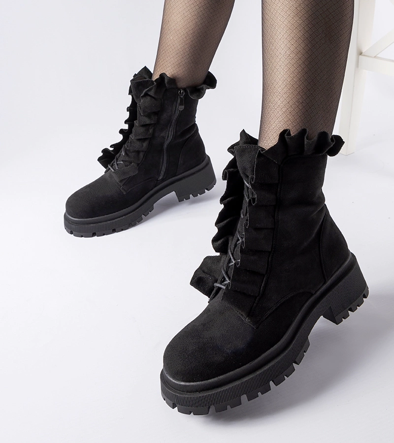 Botine negre cu volane din piele ecologică Sterpito