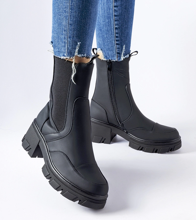 Botine negre cu toc din piele ecologică Pacific
