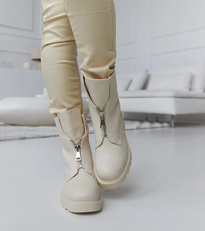Bocanci călduroși bej cu fermoar Oakdale.