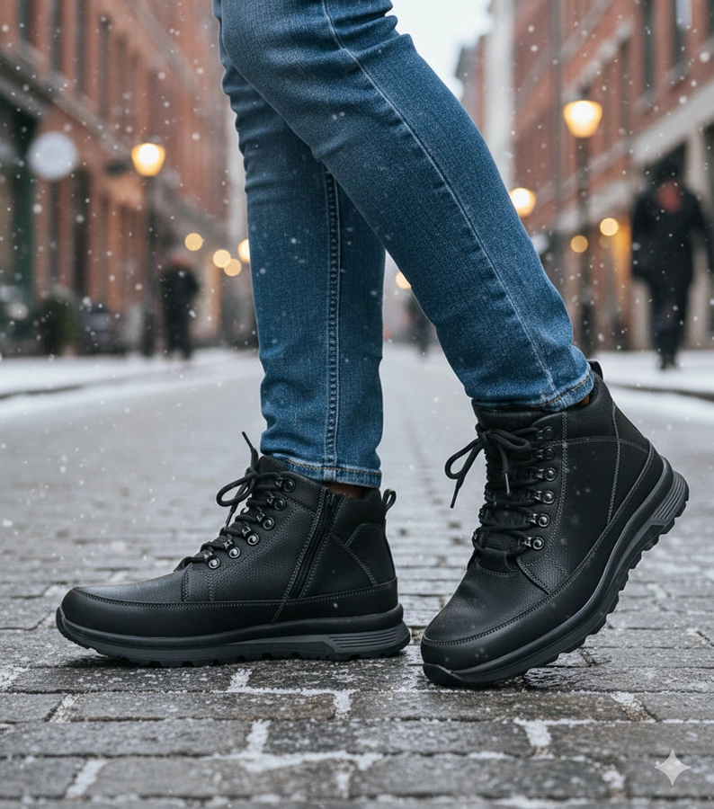Cizme de zăpadă negre pe platformă cu blană șiretate Lydia