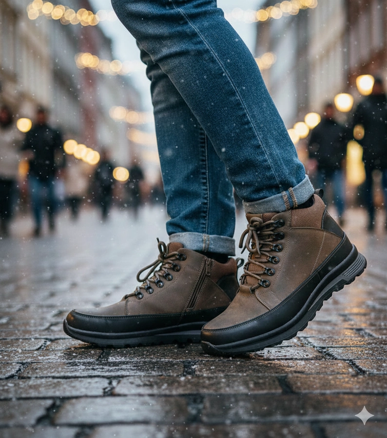 Cizme de zăpadă maro pe platformă cu blană și șireturi Lydia