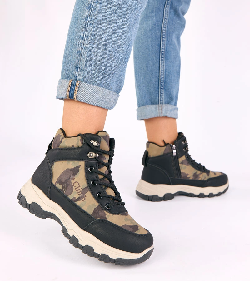 Cizme negre de zăpadă pe platformă cu broderie decorativă Alwena