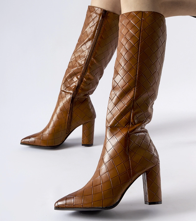 Cizme lungi maro calduroase din piele ecologica Scandale