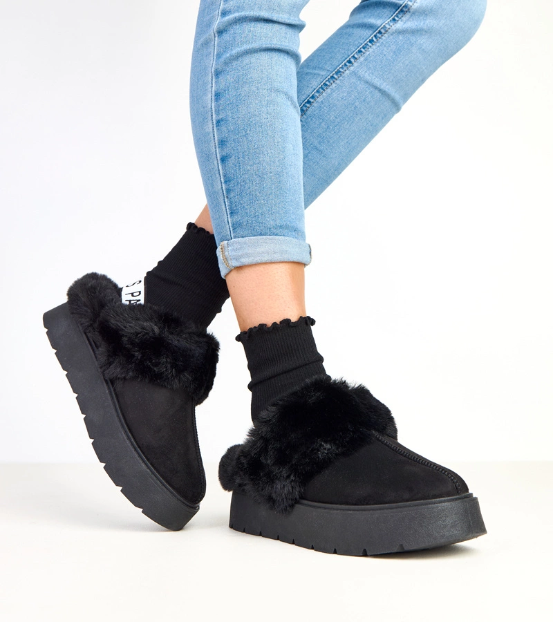 Cizme scurte negre îmblănite cu elastic Eija