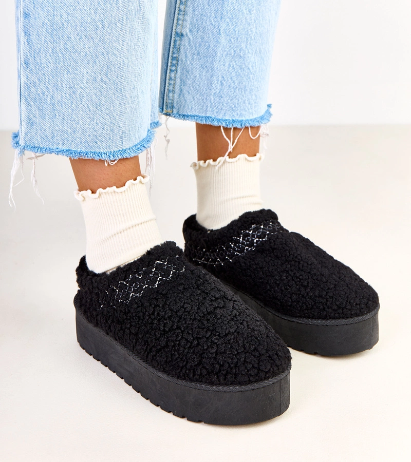 Papuci verzi pe platformă, decorați cu blăniță și cu elastic la călcâi Frank.