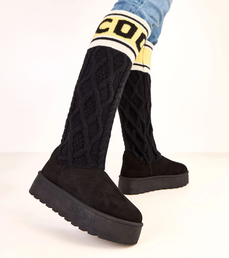 Cizme de zăpadă negre cu platformă și gambă înaltă Coo