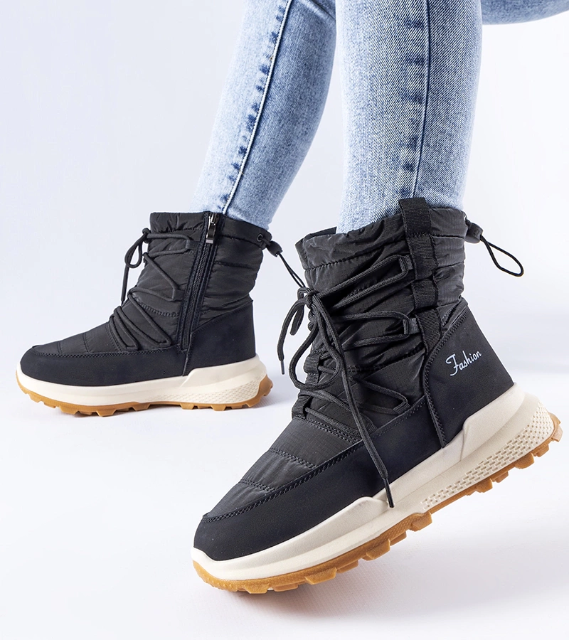 Bocanci negri clasici de zăpadă din piele ecologică Bobby.