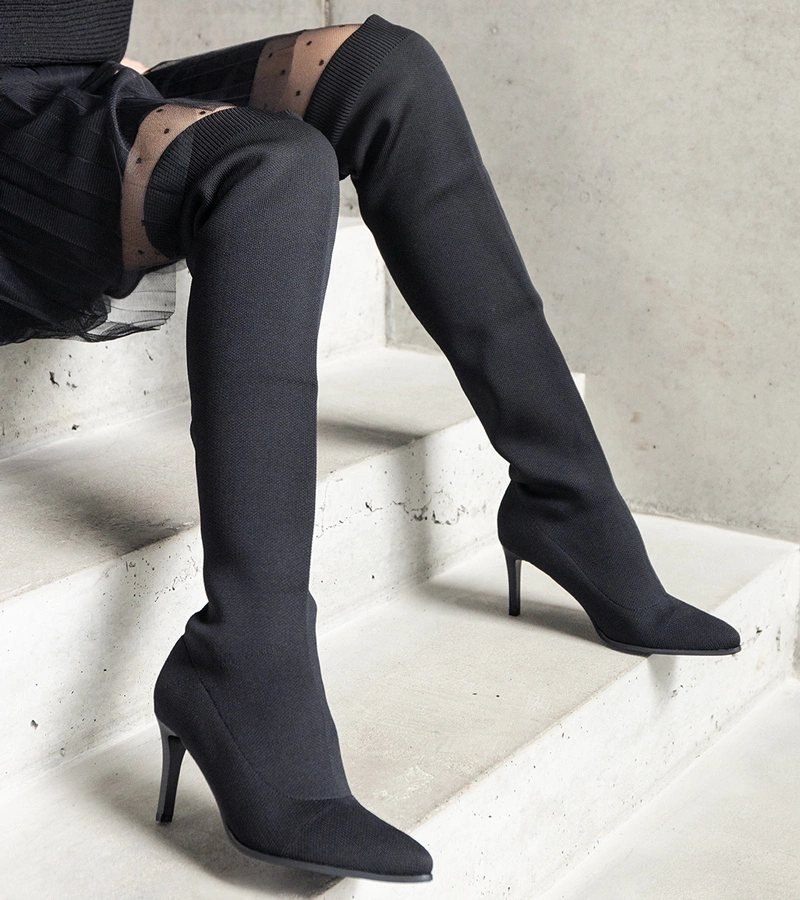 Cizme negre cu toc înalt și cu guler elastic Atari.