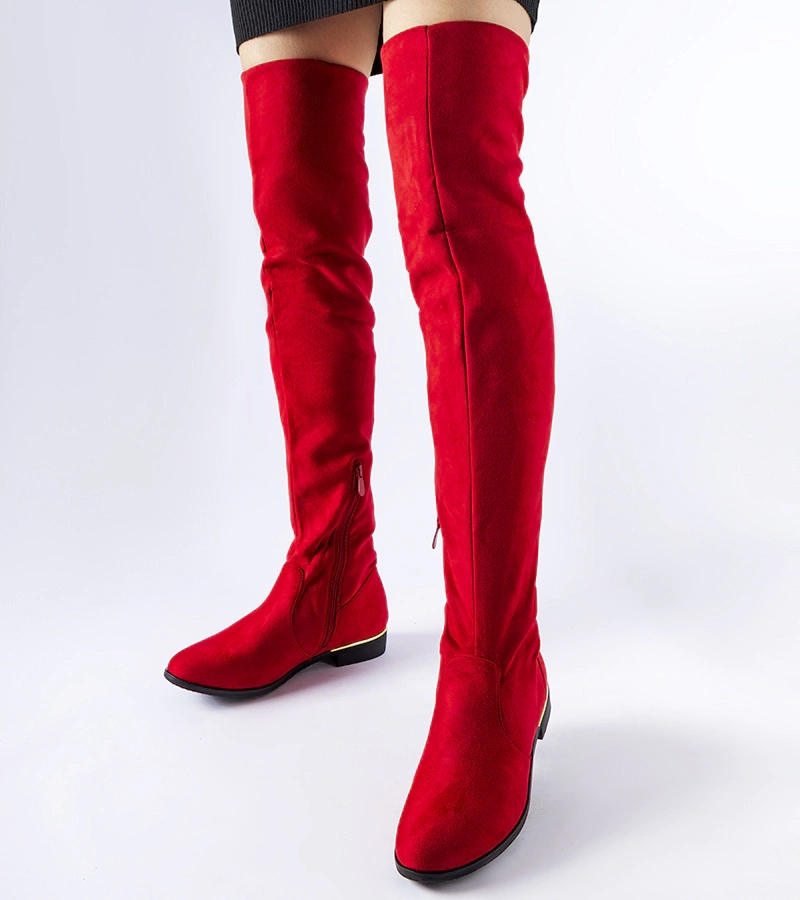 Cizme lungi rosii calduroase din eko-sueda Elwira