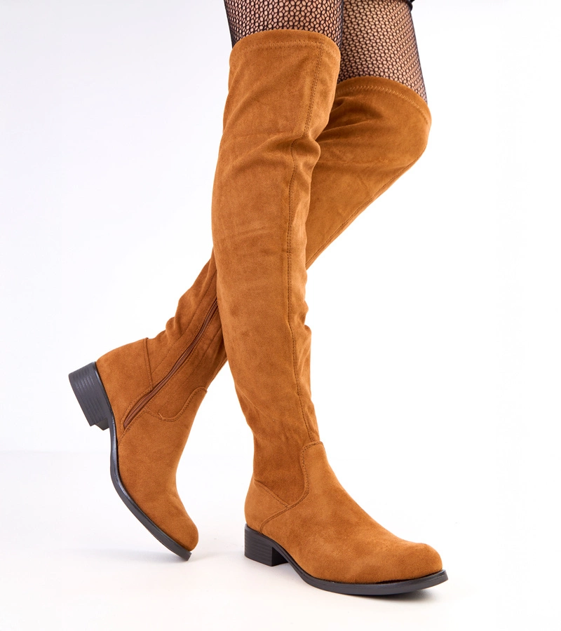 Cizme bej deschis cu față elastică și toc plat Vrissa