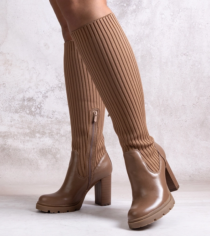 Botine lungi din piele ecologică Polmapina, de culoare maro închis.