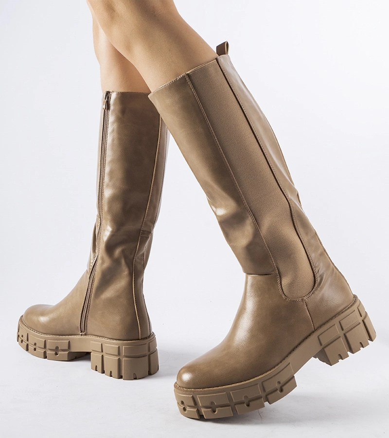 Cizme bej cu platformă și toc Zoccorino.