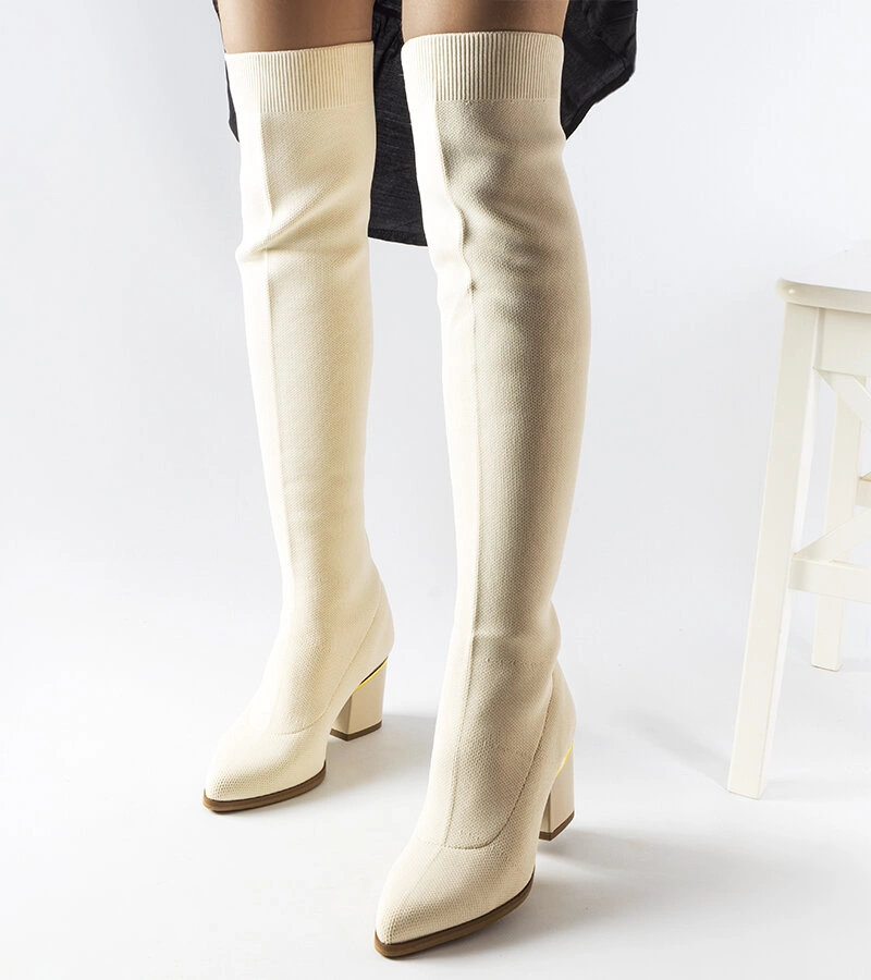 Cizme elegante bej cu partea superioară elastică Ida