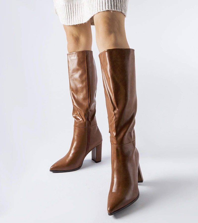 Cizme cu toc stiletto din piele de șarpe maro Carmine