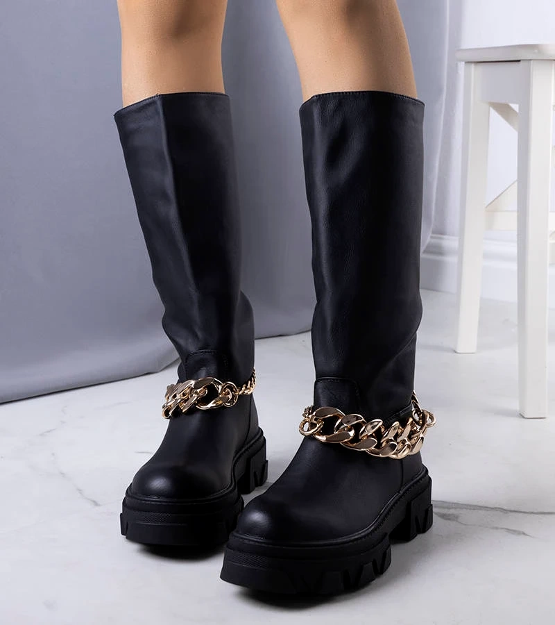 Cizme negre înalte decorate cu cusături Bel