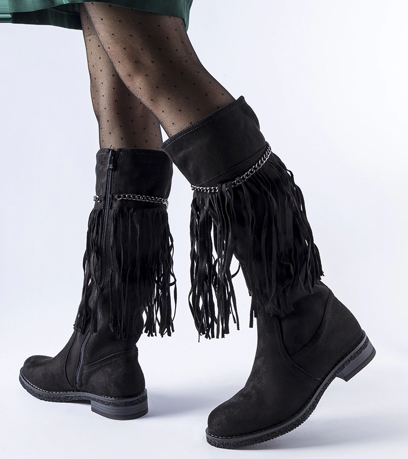 ( cantitate produse: 297 )Bocanci negri cu lănțișor și ciucuri Safar