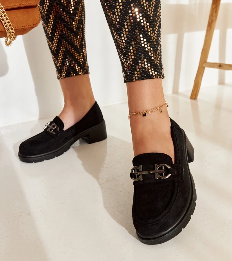 Mocasini de piele intoarsa neagra cu clema Sardis