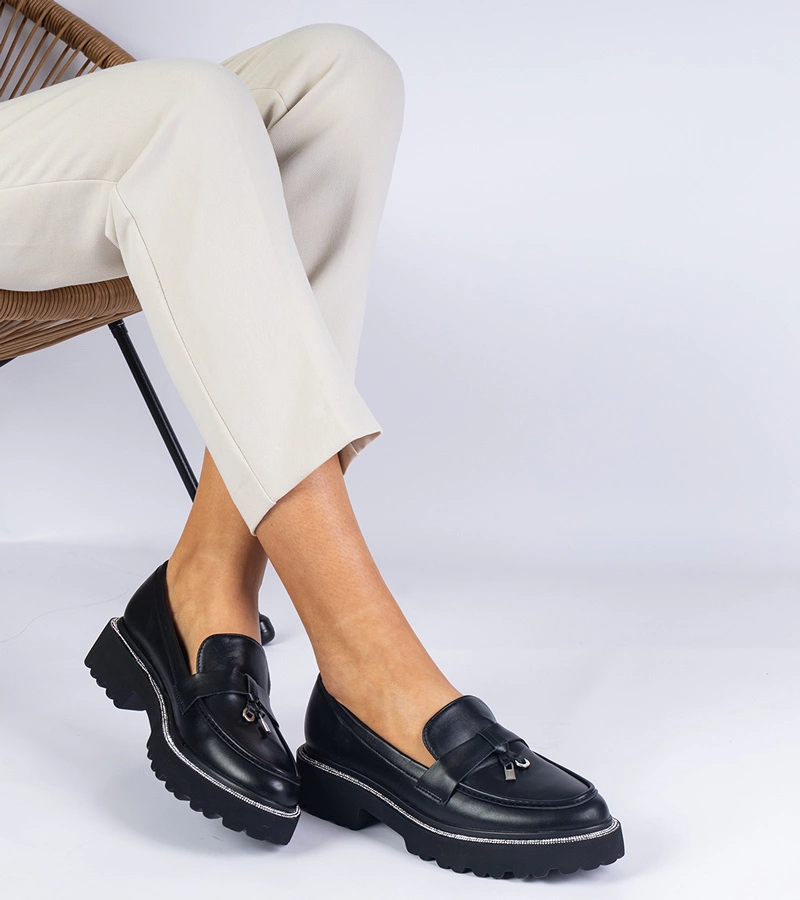 Mocasini negri pentru femei pe platformă cu ornament Selerina