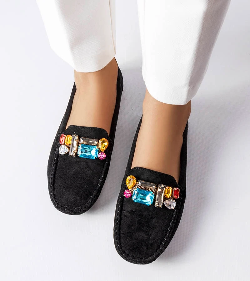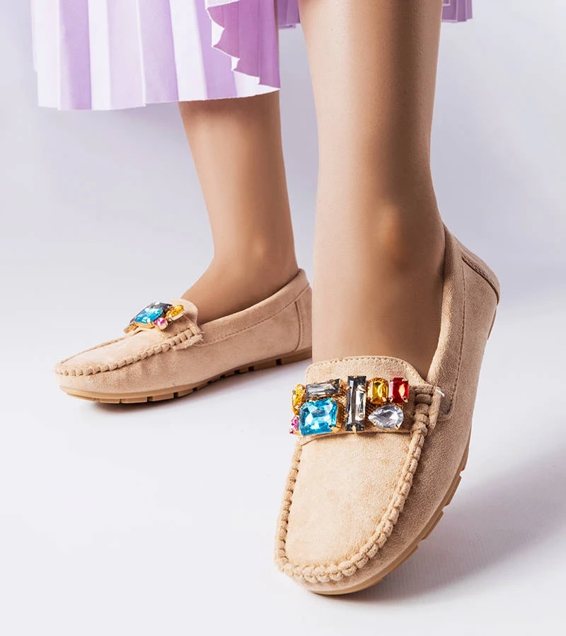 Pantofi jumătate lăcuiți bej cu zirconiu Mouss