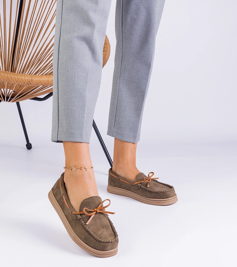 Mocasini maro cu lanț din imitație de catifea Suelli