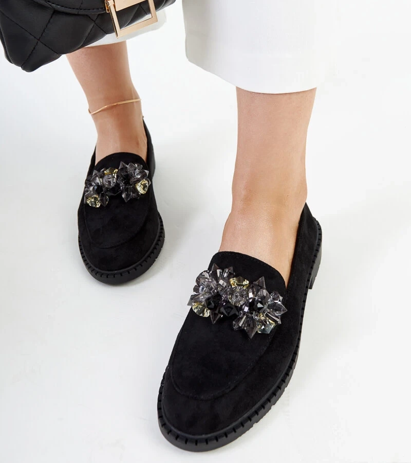 Pantofi mocasini negri lăcuiți cu cristale Balonia