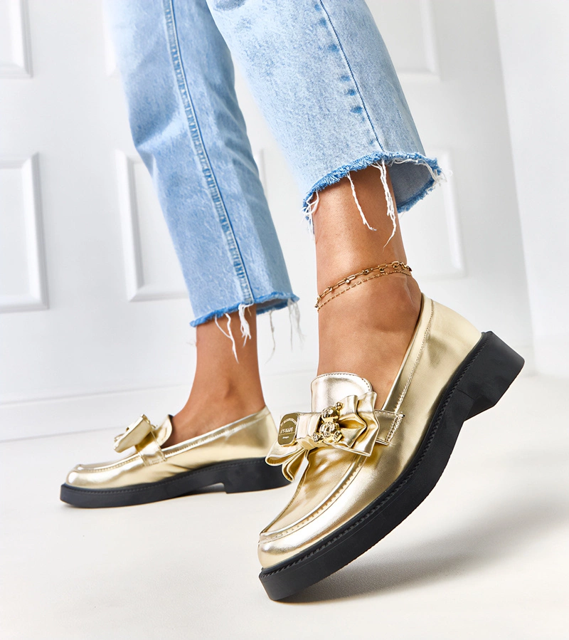 Pantofi aurii cu fundiță și ursuleț Teriwa