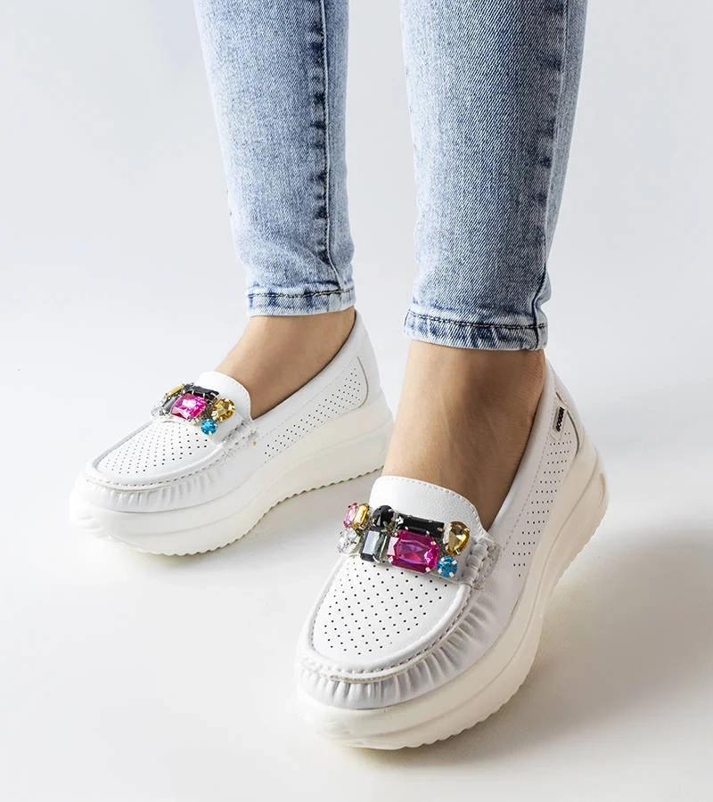 Mocasini din piele albă Maryville