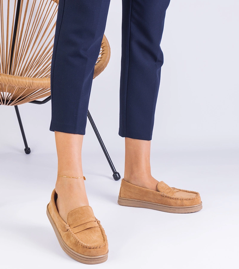 Mocasini de damă din piele ecologică întoarsă caramel Sandoval