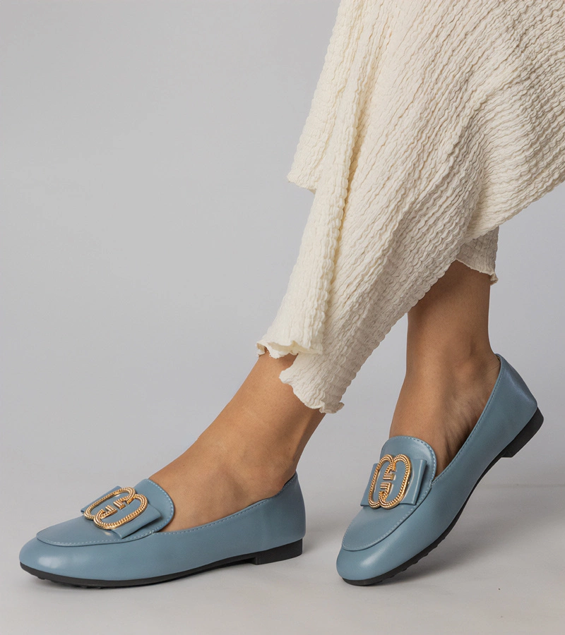 Mocasini de damă albaștri cu ornament auriu Frada