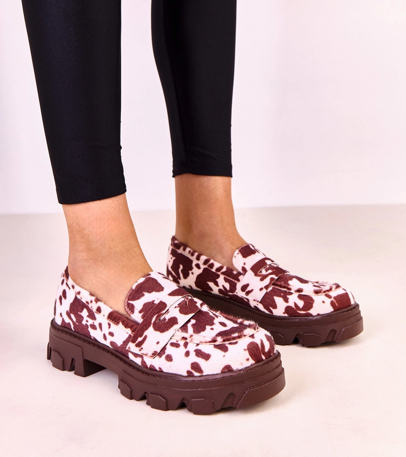 Mocasini maro din piele ecologică cu ornament Kalenda