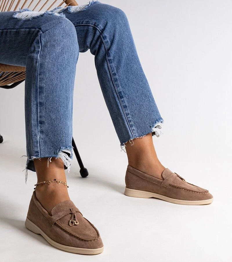 Mocasini maro cu lanț din imitație de catifea Suelli
