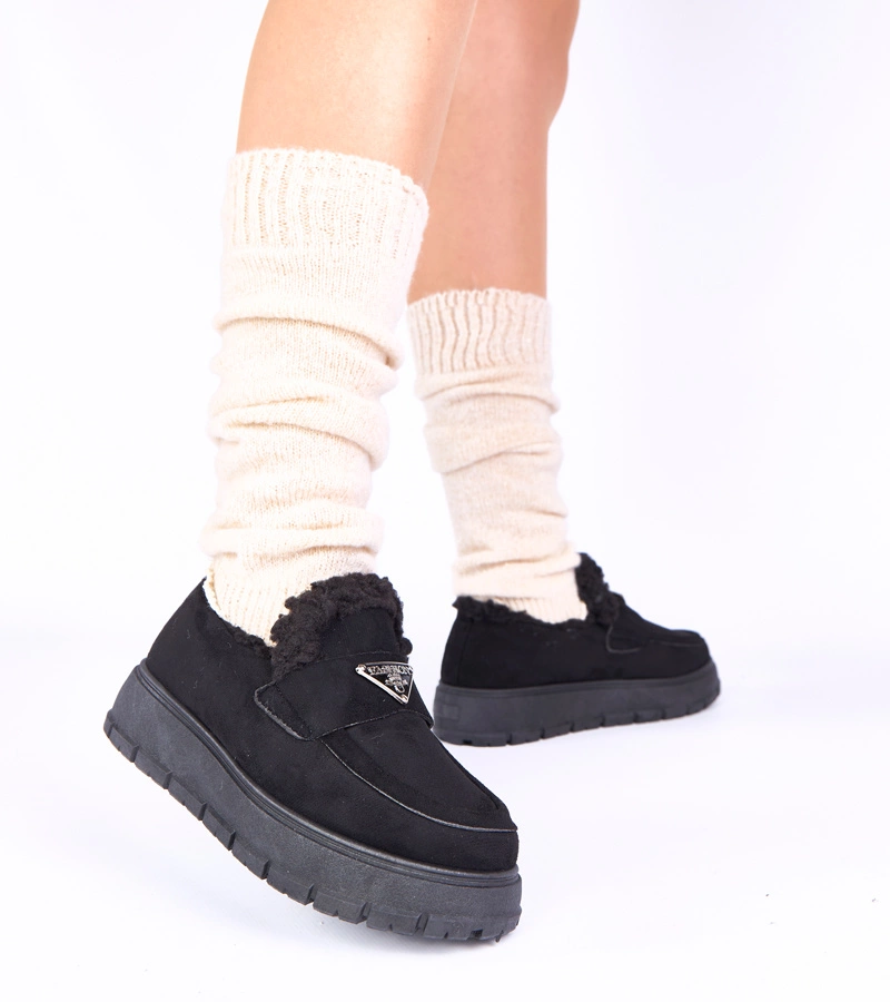 Mocasini negri de damă pe platformă cu finisaj mat Sambada