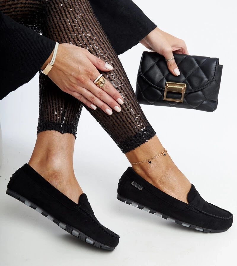 Mocasini de piele de antilopă neagră cu cristale Zemzem