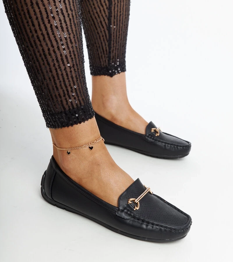 Mocasini negri cu o cataramă decorativă Adila