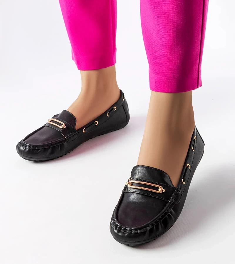 Mocasini eleganți negri cu ornament Ouellet