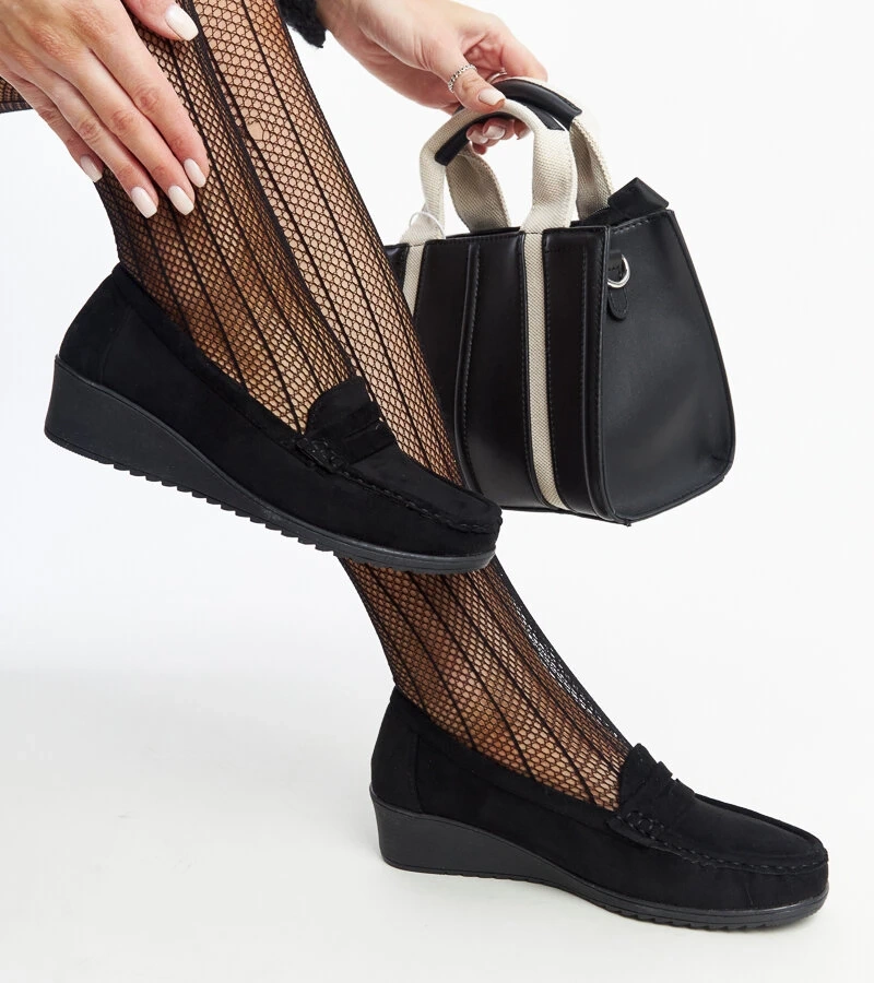 Mocasini negri de piele intoarsa cu platforma de la Sakena