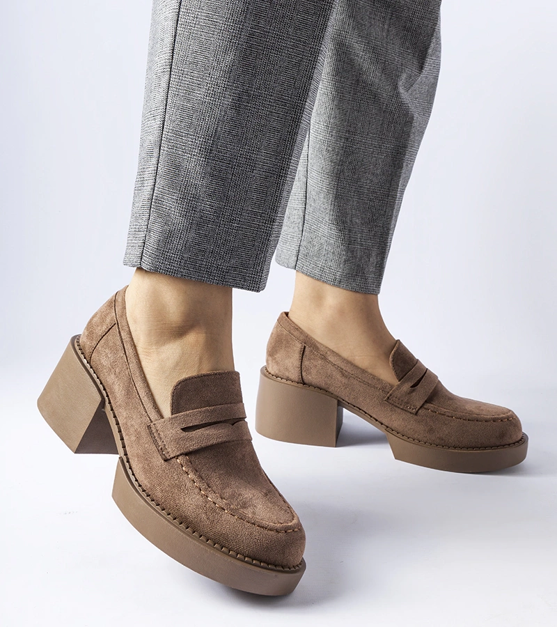 Mocasini din piele de căprioară maro pe platforme Erin
