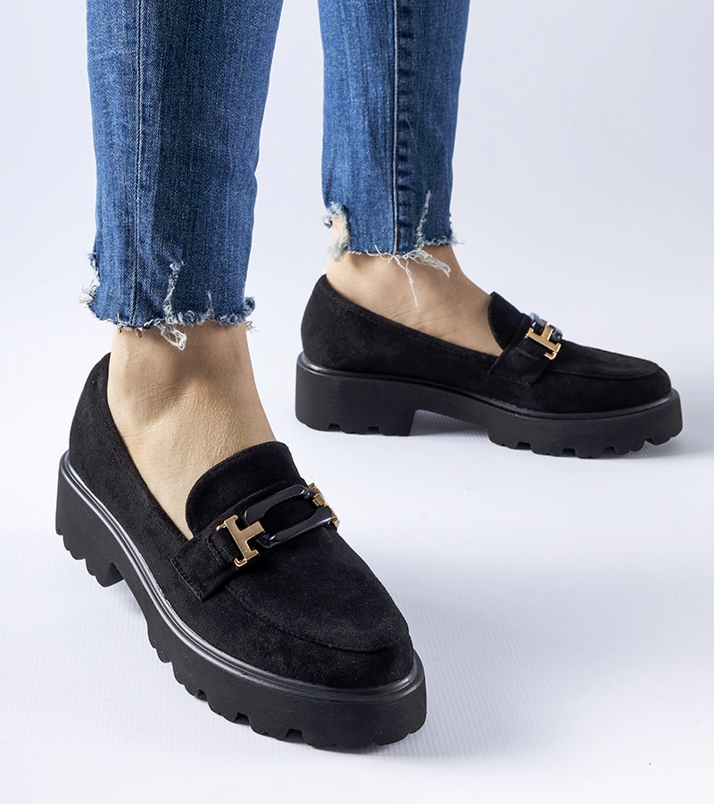 Mocasini negri cu talpă înaltă și cataramă Vigolo.