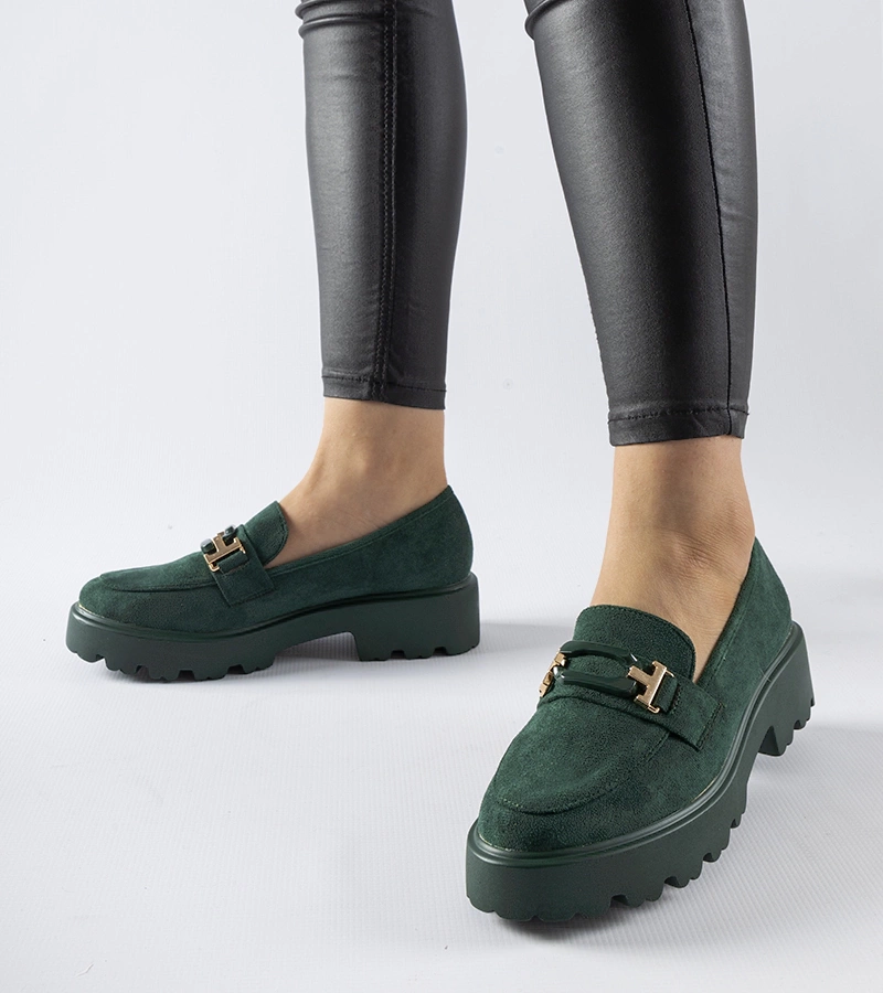 Mocasini verzi împodobiți cu zirconii Marsilius