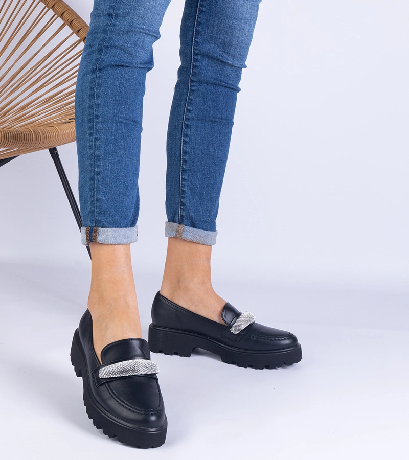 Mocasini negri pentru femei pe platformă cu ornament Selerina