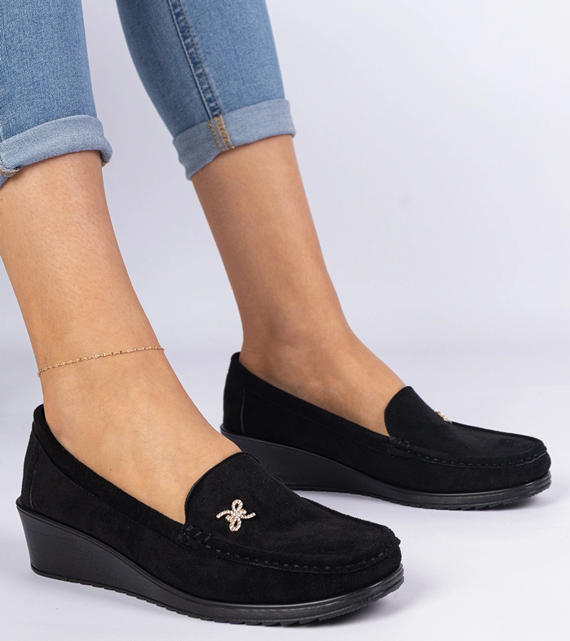 Mocasini negri de damă pe platformă cu finisaj mat Sambada