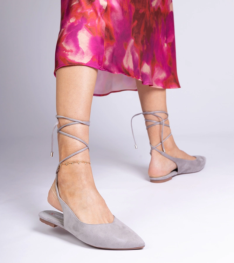 Pantofi gri cu toc jos legați la gleznă Karlioz
