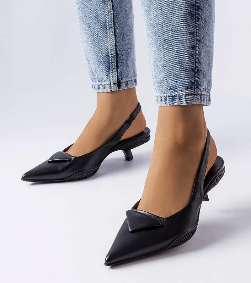 Pantofi stiletto negri cu finisaj satinat de Lochlan
