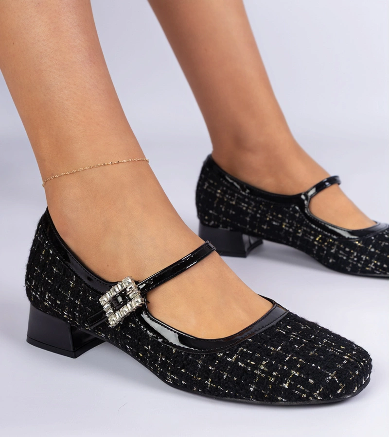 Pantofi negri cu toc gros și catarame Eridana