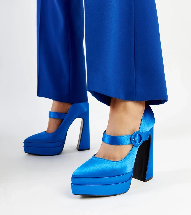 Pantofi stiletto roz neon, satinată, cu fundiță, de Mia